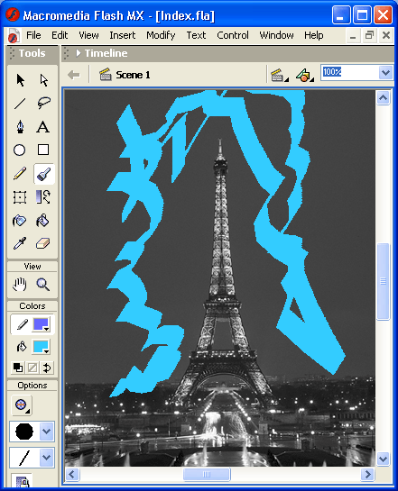 (Закрашивание выбранной области) - «мазок» кисти влияет только